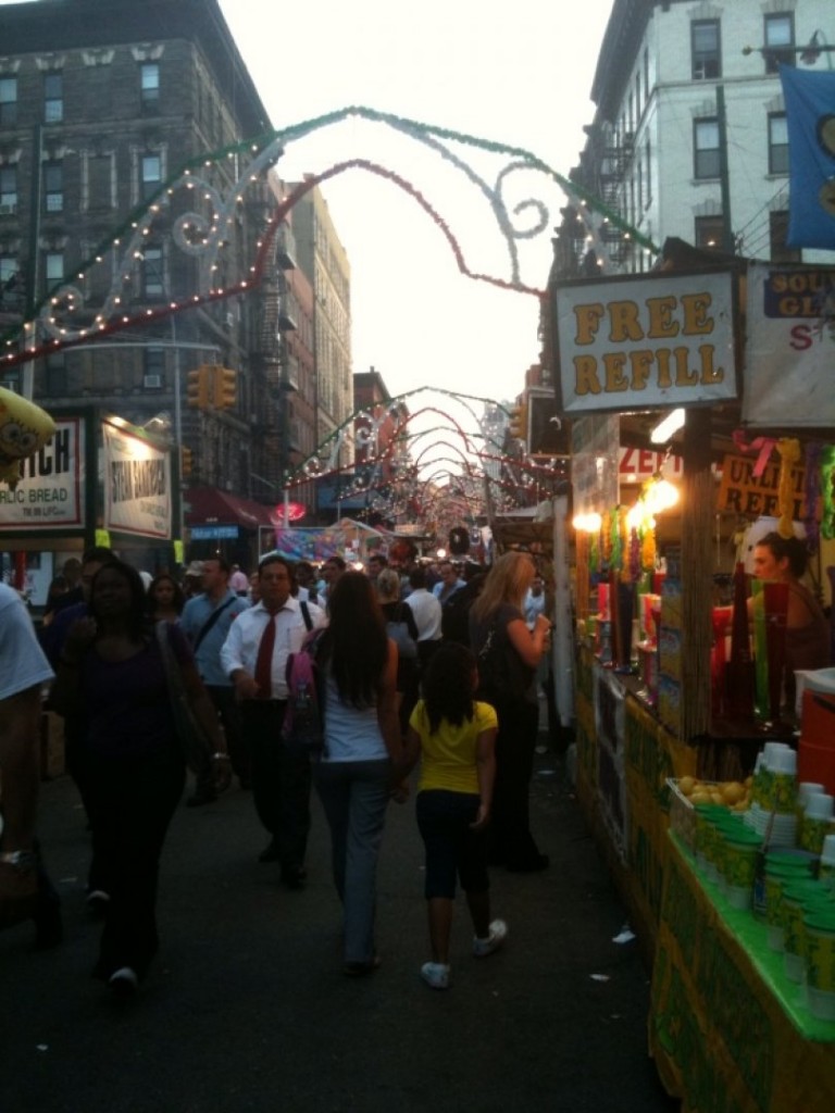 Each of the restaurants in Little Italy extends some makeshift stages to create outdoor seating during the festival, and many of the prix-fixed dining options are actually quite affordable. This being one of the few times annually that we visit the area, we decided to take in an Italian dinner at one of the packed eateries. Although the regional cuisine in Little Italy may be overrated or considered non-authentic, this year we sat down at Sofia’s on Mulberry between Hester Street & Grand Street. The mussels and chicken francaise were savory and appropriately cheap, and we were seated and served quickly in the packed outdoor area. Other sit down favorites of ours during the festival are Da Gennaro and Pelligrino, which ranked as the number one restaurant in Little Italy last year.