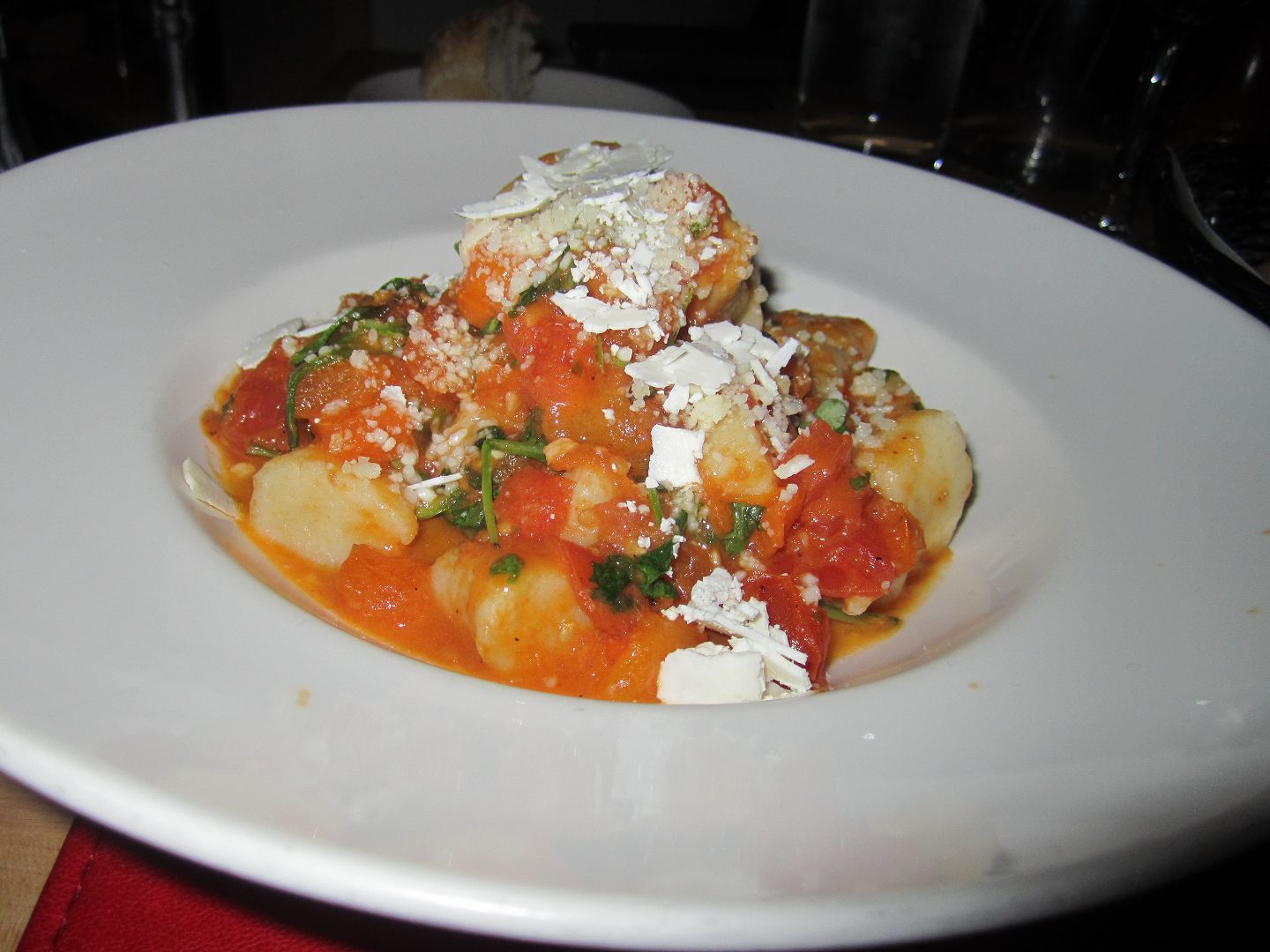 The menu is relatively expansive, broken down into the usual suspects- Salumeria, Pizza, Antipasti, Pasta, and Secondi- many of which sound better than they taste. Opting for a few different tastes, our party opened with a forgettable “Wild Mushroom†pizza. Reasonably priced at $13, the thinly cut, mostly crust laden slices were bland to a fault, despite being topped with provolone, tomatoes, and fresh parmigiano. Portion size here was no issue however as the affordable pizza is sized to fill even the hungriest pizza lover. The same could not be said however for the diminutive “Scallops al Cavofiore,†astronomically priced at $28. With a plate of just three delicately prepared scallops, the accoutrements of cauliflower, black truffle, and a single piece of crispy proscuitto failed to make the plate look like a full dinner portion. Rather, it looked like the rest of the meal had been plucked off of the dish on its way out from the kitchen to our table. The lone notable however was a bowl of the “Gnocchi di Patate†($20), soft pasta pillows blended with heirloom tomatoes, ricotta, and bits of arugula. Although the tasty pasta would not salvage an otherwise ordinary dinner, it the combination of red sauce and fluffy pieces of gnocchi and soft cheese did make for our favorite of the evening’s selections.