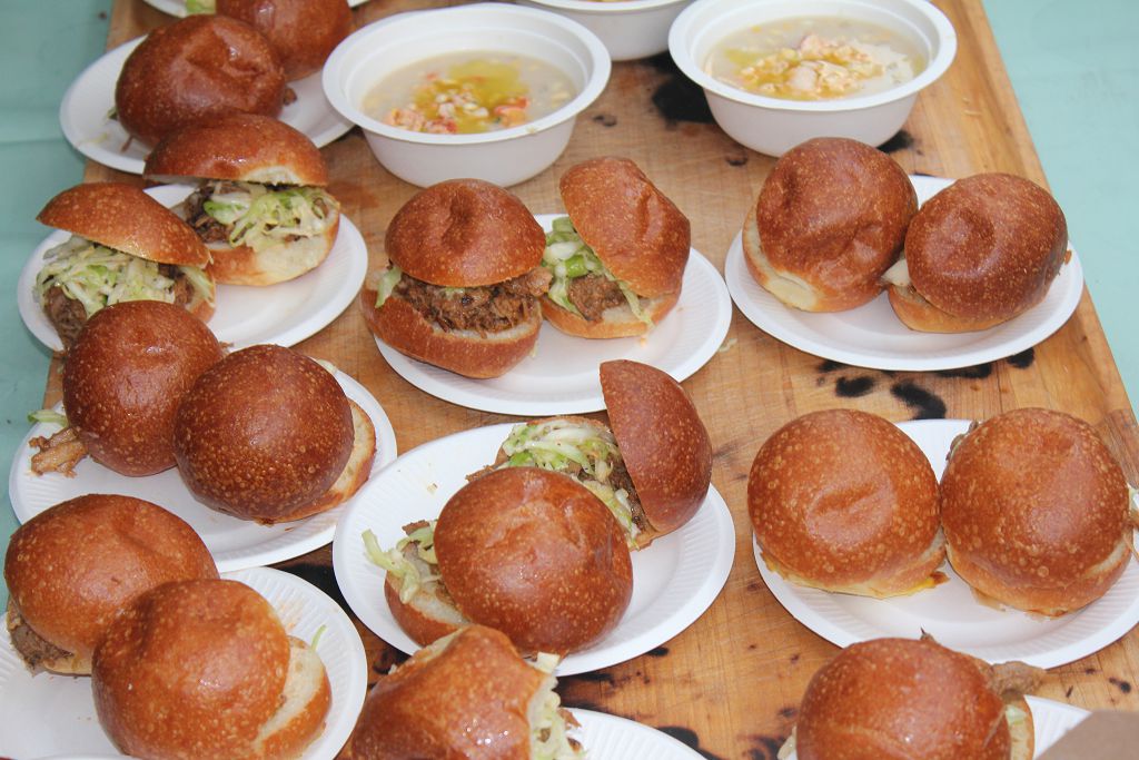 Although the event officially kicked off at 4pm, we arrived as the sun was beginning to descend and the Night Market was still fully packed. Unfortunately though because of our delay, fare from the likes of Monument Lane had just run out as we had arrived. There was plenty of other cuisine to pick on however and we paraded around the open space seeking out the shortest lines. Union Square Café’s “Peach Turnovers†and Telepan’s “Blueberry Crescents†were among the sweet handheld confections being prepared, while fast casual salad shop Chop’t utilized local farms for their ingredients consisting of fresh goat cheese, grape tomatoes, Kirby cucumbers, amid a sea of Artisan lettuce, and topped with house made focaccia croutons and basil, mint, and chives. Back Forty and Back Forty West were shelling out “BBQ Pulled Pork Sliders,†“Sour Cherry Crumb Pie,†and a delectable “Chilled Lobster Corn Soup†while Hearth and Terroir’s “Freekah Salad†could be spotted all around us during the evening.