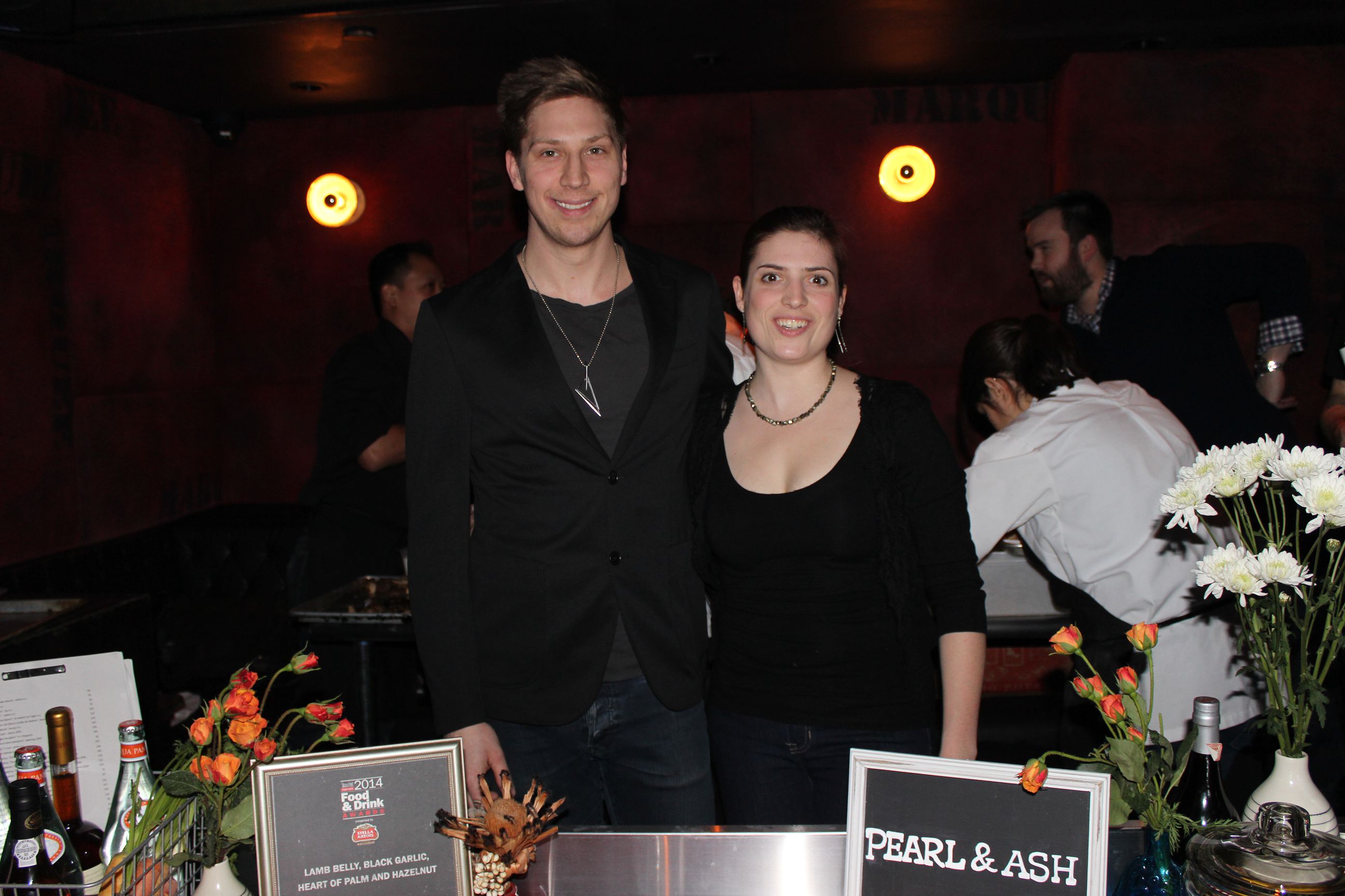 Though many of the attendees were left empty-handed, there were plenty of alternative options available to appease the hungry eaters inside. Newcomer Toro was serving a smoky “Chorizo Flavored Pork Butter with Fried Garlic” atop a crunchy crostini. The lacquered hunk of pork although flavorful, had us yearning for sticks of gum as the evening wore on to mask our garlicky breath. Betony‘s intensely nutty “Foie Gras Bon Bons” looked piping hot but were actually served cold yielding an unparalleled rich flavor profile while Golden Cadillac’s “Monte Cristo Minis” paired succulent smoked duck with ham and swiss in a deep fried bite and Bunker‘s “Popcorn Shrimp and Bay Scallops” were on the lighter side and a bit messy, but damn were they tasty. Topped with a lotus root salad, the portions were very generous and the sample was undeniably refreshing. The star of the night came from Bowery restaurant Pearl & Ash whose perfectly cooked “Lamb Belly” plated with a touch of black garlic and hazelnut proved to be the most complete serving that we had the pleasure of tasting- remarkably tender and savory at once.