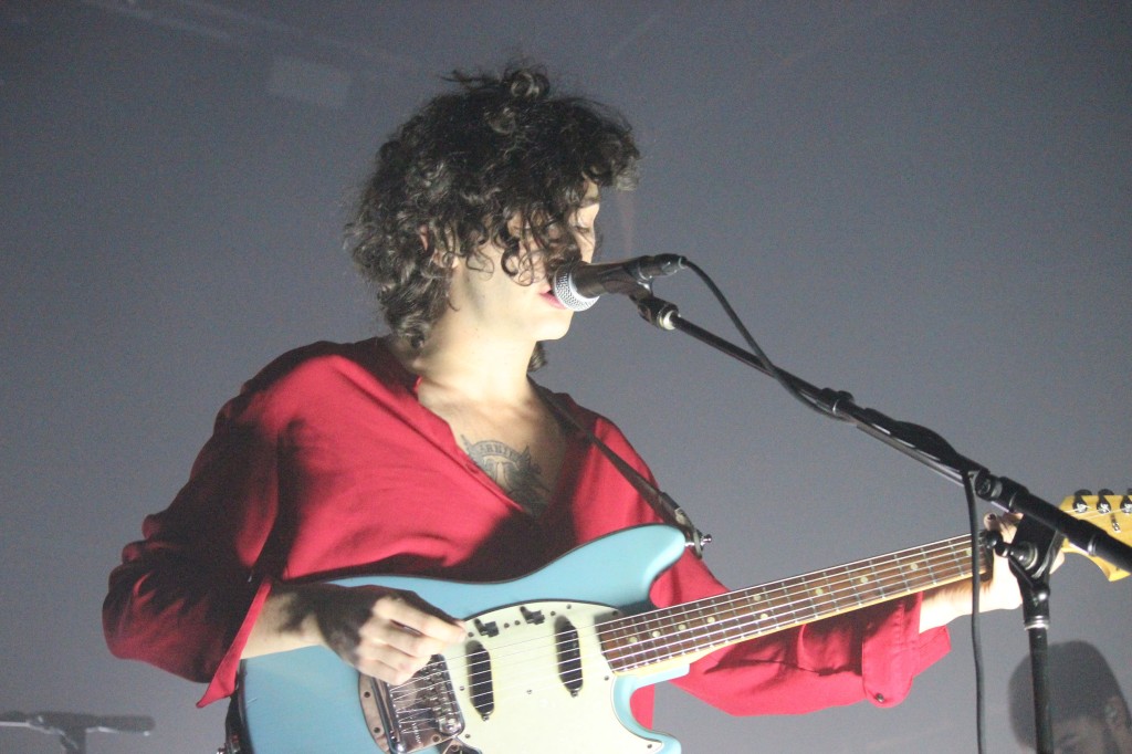 Cloaked in a thick layer of stage smoke, the band’s enigmatic frontman Matt Healy still manages to own all of the eyes in the room. Donning a red long sleeved shirt with a deep enough V-neck to allow his ‘Annie’ inscribed tattoo to be seen, Healy methodically led his bandmates through a quickly moving set that exceed twenty songs. And whether he was singing familiar lyrics, lending his talents on his blue rhythm guitar or slugging down gulps of what appeared to be wine straight from the bottle on stage, the audience was utterly captivated throughout meeting his every movement with audible reaction. Though the band continues to tour in support of their self-titled debut released more than a year ago, their brisk 75 minute set also touched upon tracks like “Me” and “HNSCC” plucked from The 1975′s previous EP releases. The setlist seemed to matter fairly little to the fans on hand, who roared with pleasure at the opening chords to each song equally and without exception.