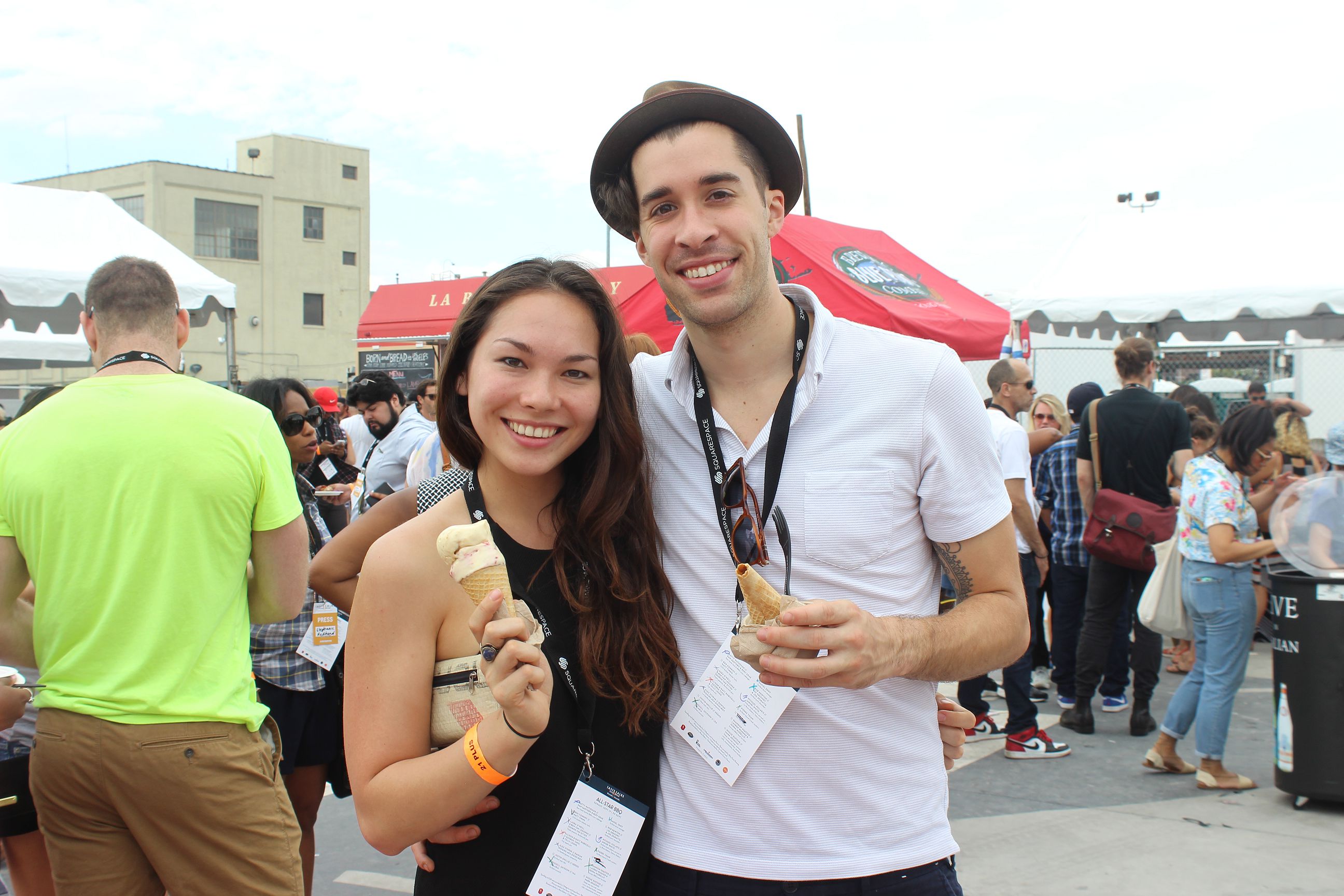 Joined by the famously high-haired DJ and drummer for The Roots, Questlove, positioned as this year’s official curator, we joined hundreds of other guests still attempting to hang on to the end of the summer heat. Greeted with a cloud of beautiful barbecue fragrances, we entered the Williamsburg space with our bellies empty and mouths watering, ready to indulge at one of Brooklyn’s most picturesque waterfront settings. Bringing it back old school, the crowd’s collective feet were tapping along to some classic 1950′s music while formulated the best method of attack for the afternoon’s sea of eats. Upon seeing Upland Chef Justin Smillie sharing a table with Queens rapper Heems, we made a bee-line toward our very first stop. Deliciously we indulged in a helping of “Grilled Veal Ribs with Charred Cherry Tomato Salsa.†The combination of tender meat and succulent consistency reminded us of our first visit to the Kips Bay restaurant- perfectly prepared and brilliantly seasoned.